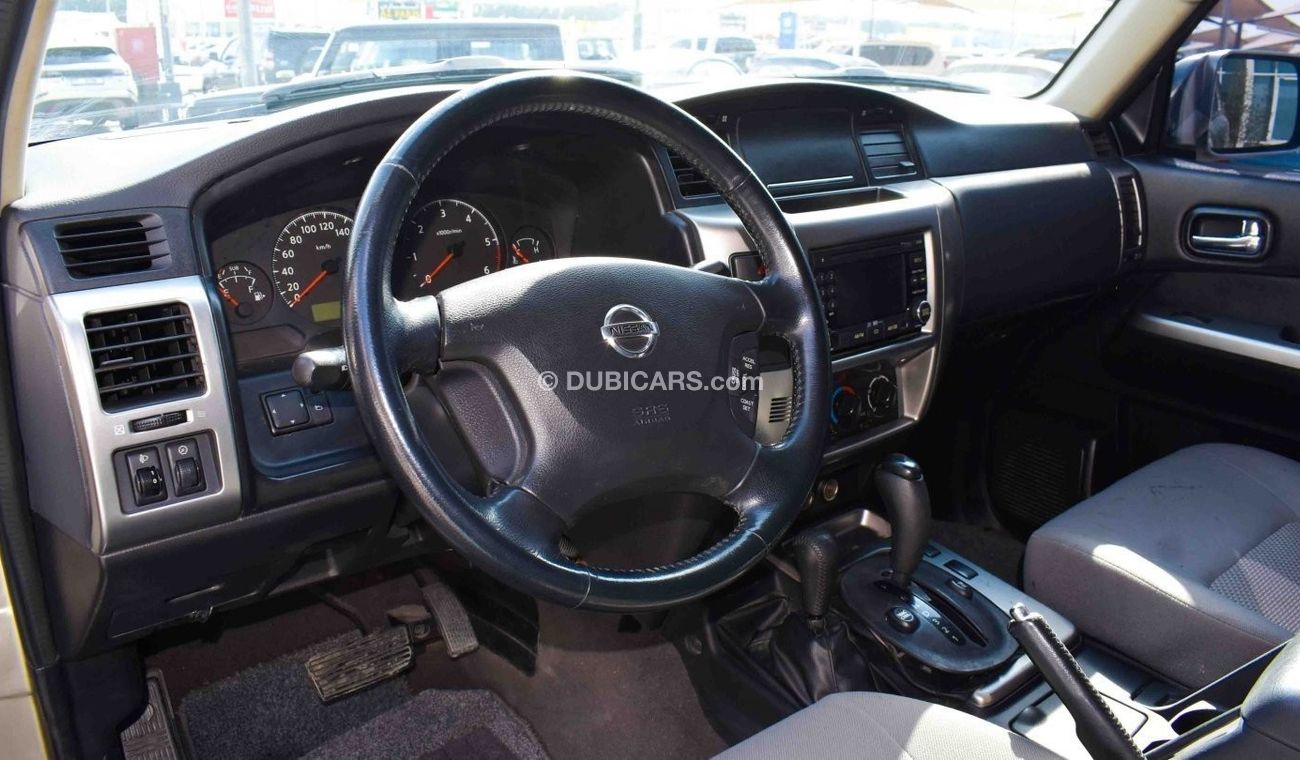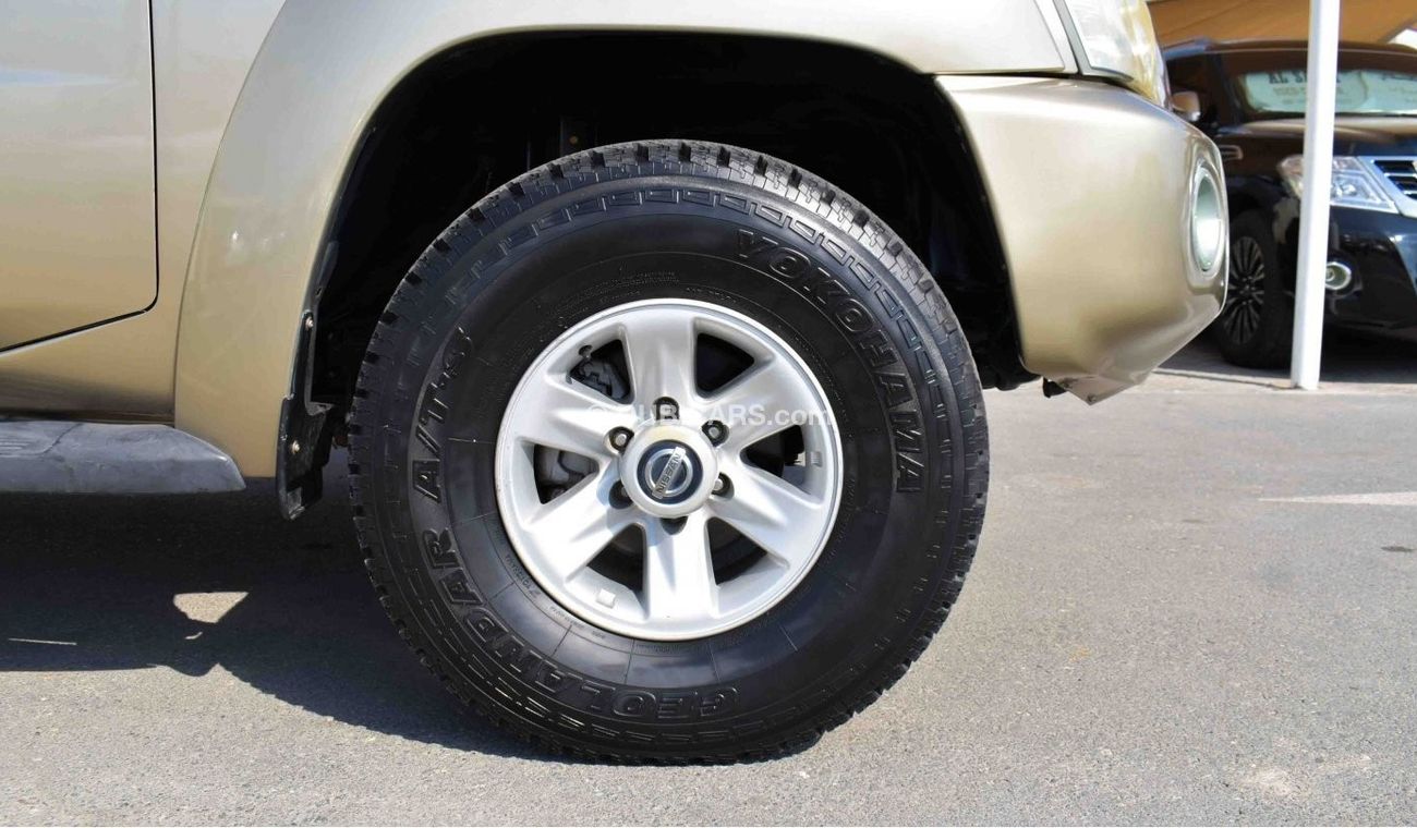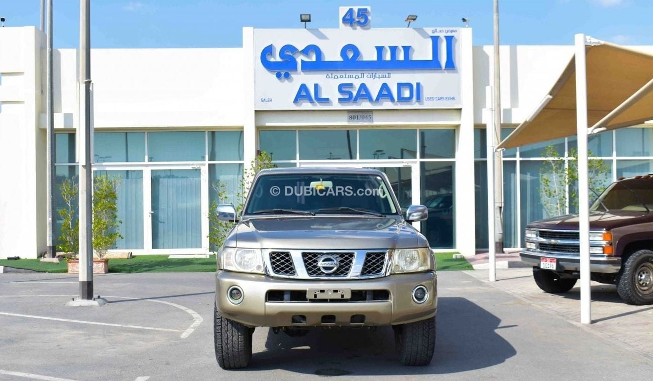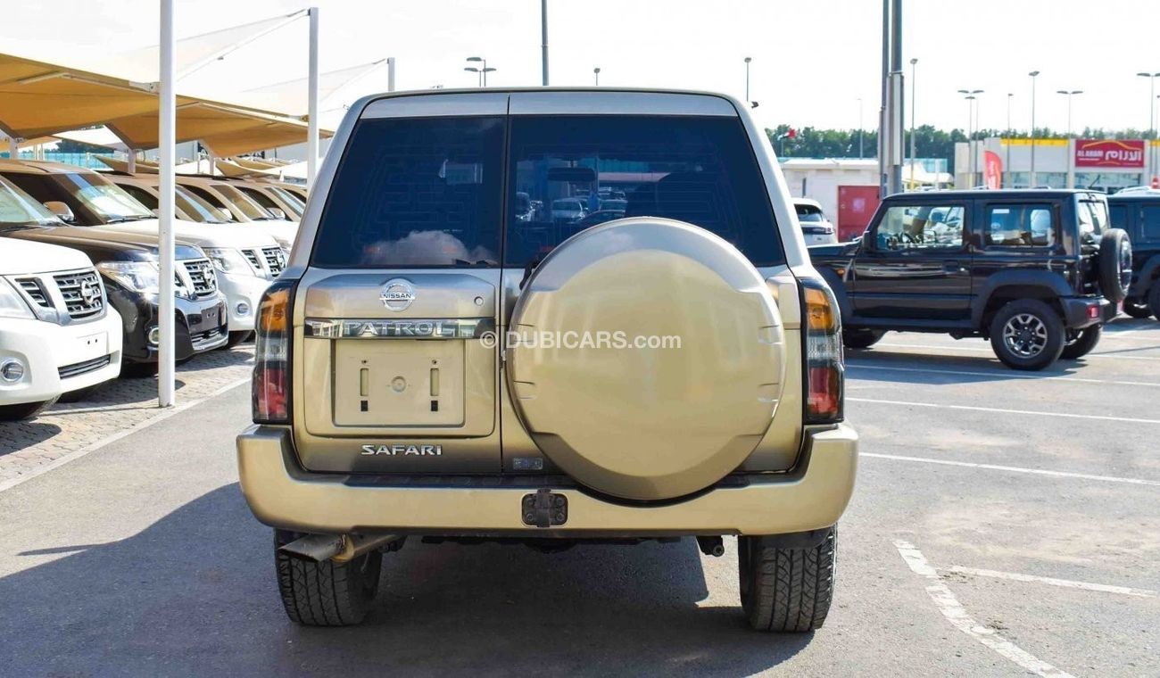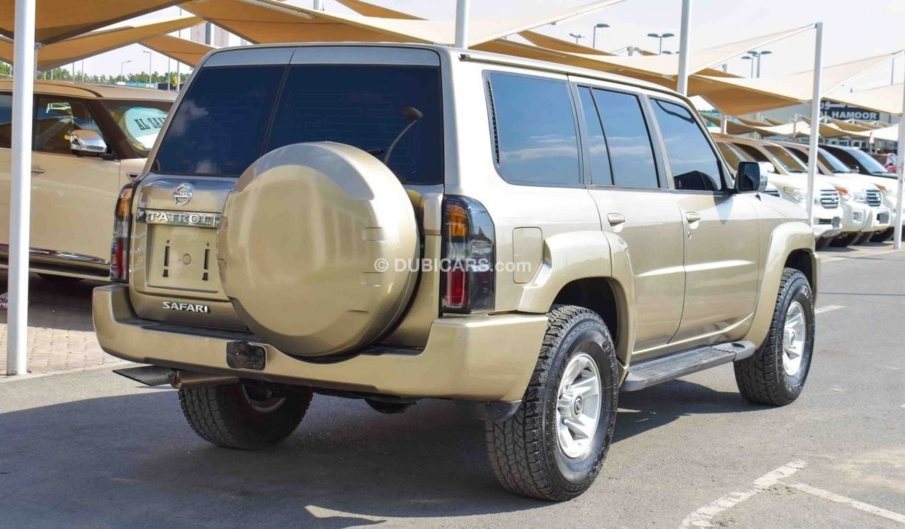 Pre owned Nissan Patrol Safari 6.2 L V8 for sale in Dubai by Saleh Al Saadi Used Cars Exhibition. 8 cylinder engine, gold exterior and automatic transmission. Comes with 17″ wheels and grey interior. 106,278 kilometers on the odometer, GCC specs.