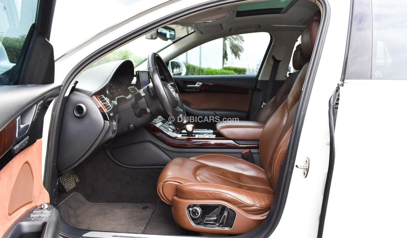 Pre-owned Audi A8 4.2 Quattro for sale in Dubai. White 2012 model, available at Al Faisal Motors LLC. This car has automatic transmission, 8 cylinders, 20″ wheels and brown interior. 152,000 km, GCC specs.