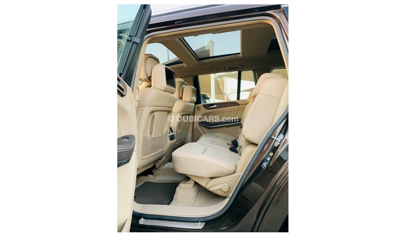 مرسيدس GL500 خليجي رقم واحد فول مواصفات جلد وبانوراما وشاشه كبيره وكاميرا وبصمه تشغيل وشاشات خلفية لون سياره بني من داخل بيج
