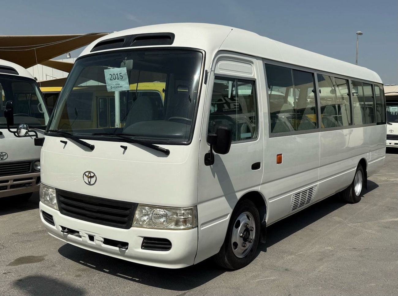 حافلة تويوتا كوستر ذات السقف المرتفع، 30 مقعدًا، تعمل بالبنزين، موديل: 2015، المسافة المقطوعة: 521,000 كم، السعر: 107,000 درهم إماراتي، محرك بنزين، رقم الاتصال: