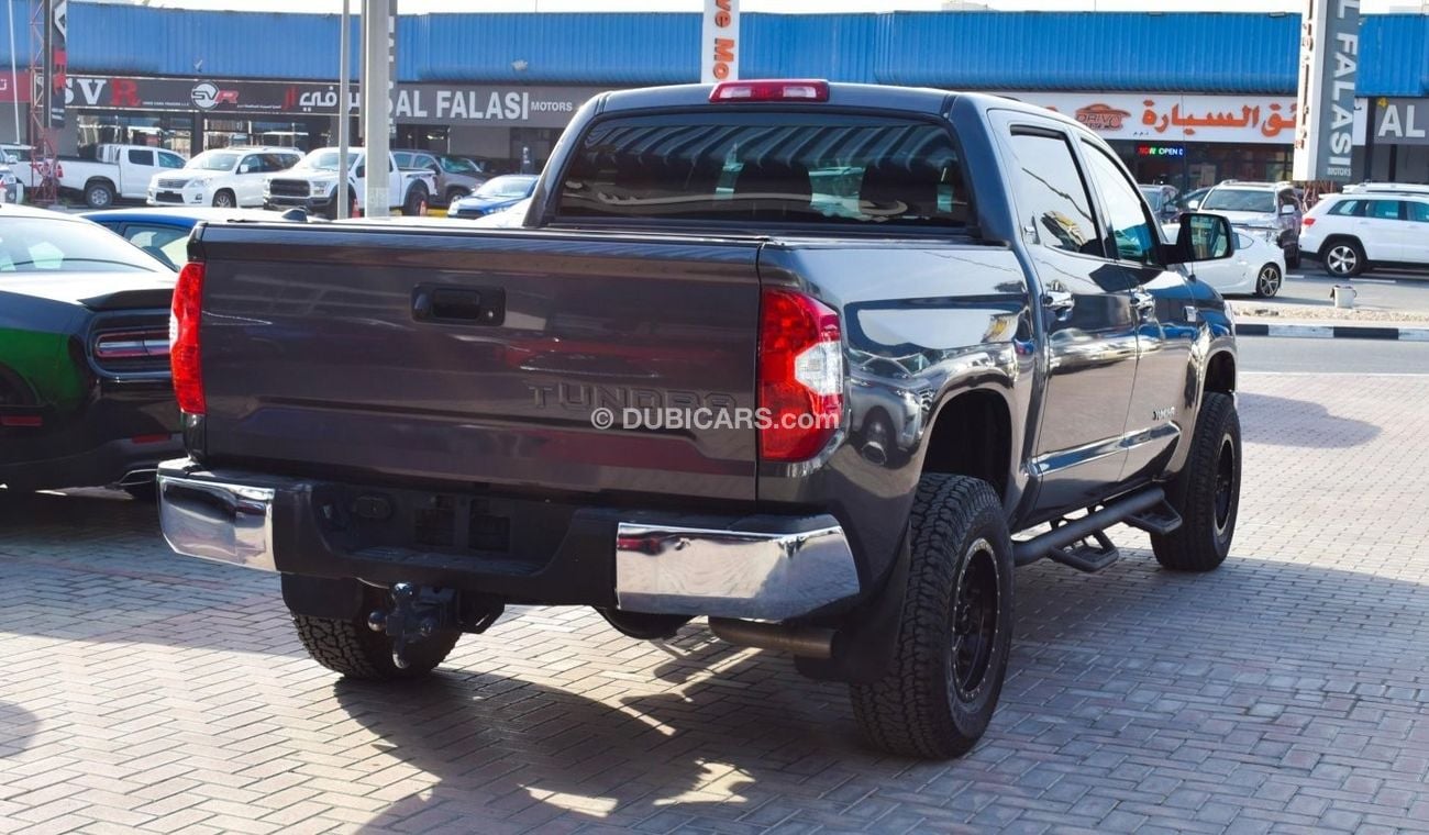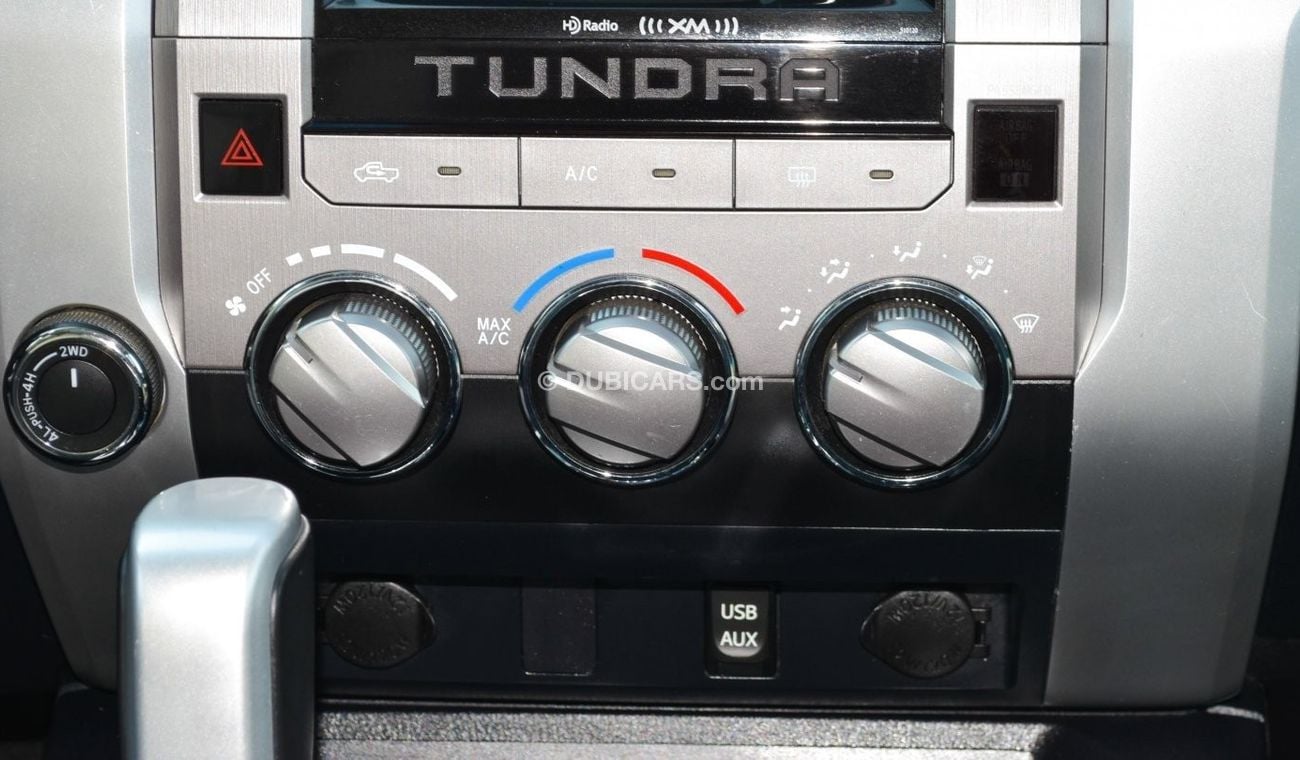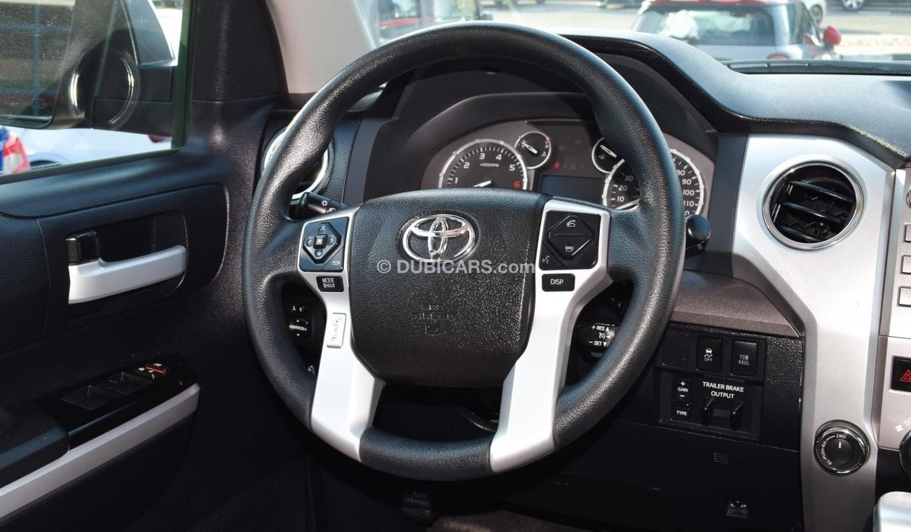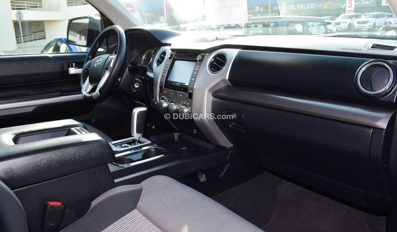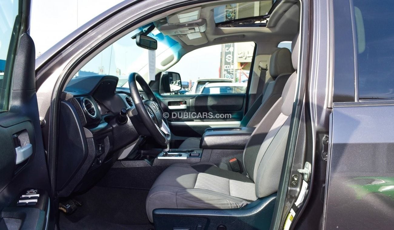 Used Toyota Tundra 5.7 L SR5 for sale in Dubai. Grey/Silver 2016 model, available at Al Falasi Motors. This car has automatic transmission, a 8 cylinder engine, 18″ wheels and grey interior. 62,500 km, Imported specs.