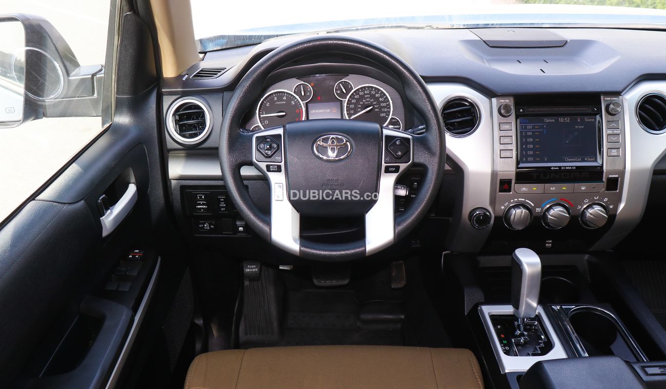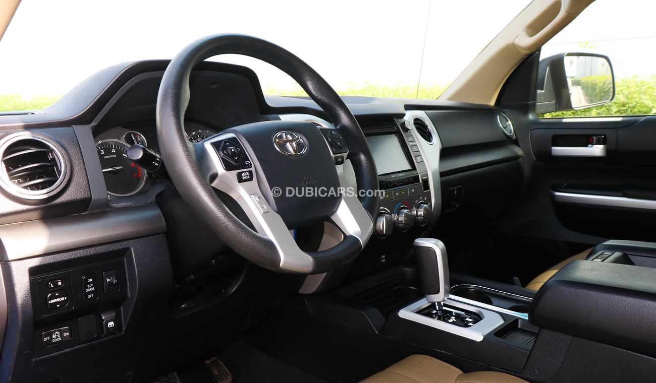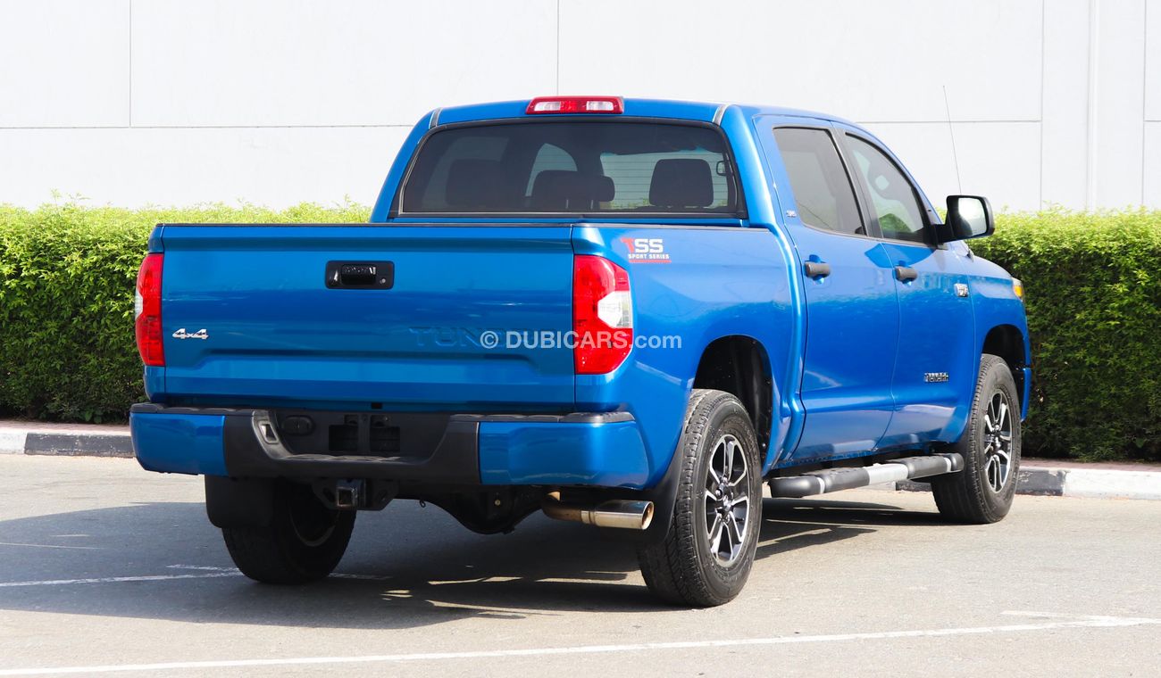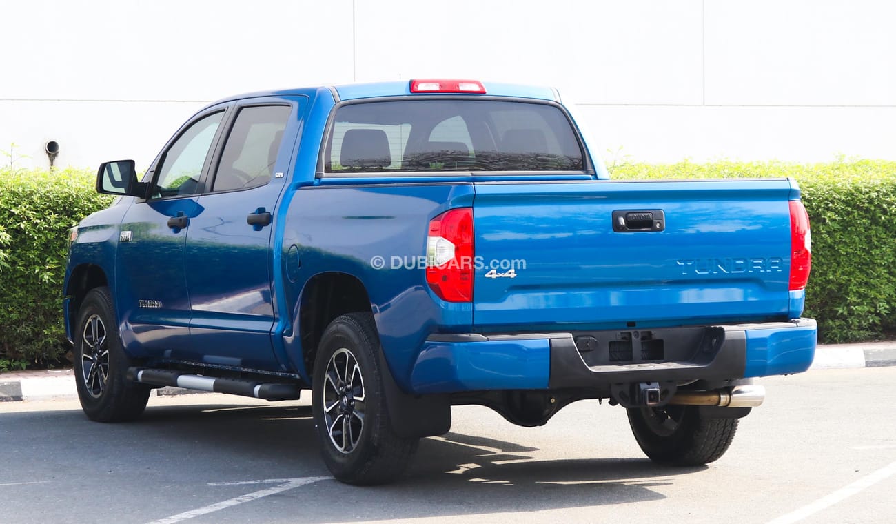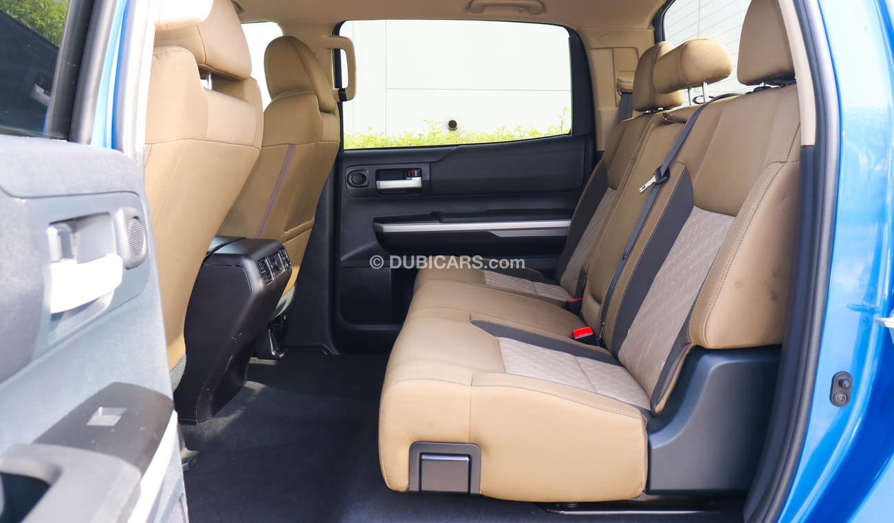 تويوتا تندرا SR5 مستعملة للبيع في دبي. لونها أزرق، موديل 2016، متوفرة لدى الفلاسي للسيارات. ناقل حركة أوتوماتيكي، 8 أسطوانات، عجلات 18 بوصة، لون داخلي بني. 62,000 كم، مواصفات مستوردة.