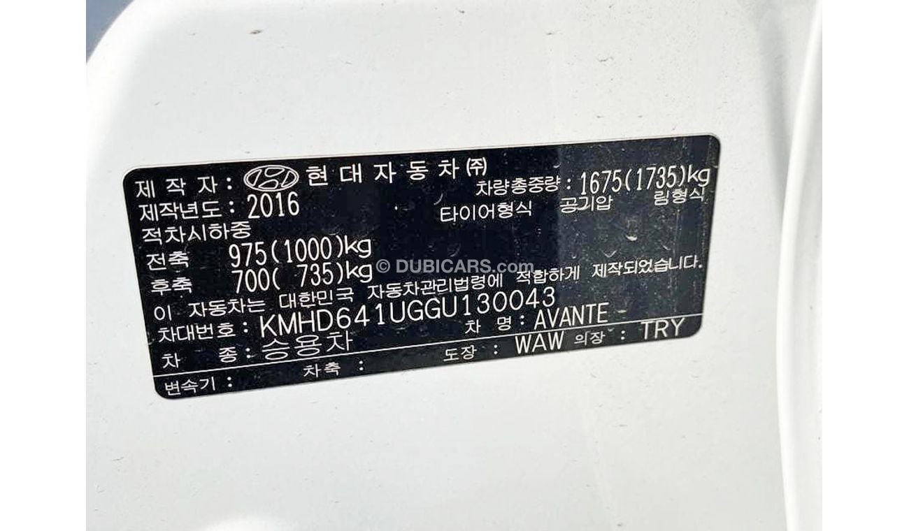 هيونداي أفانتي 2016 | إلنترا 2WD ديزل 1.6 لتر CRDi eVGT | عرض خاص للبيع