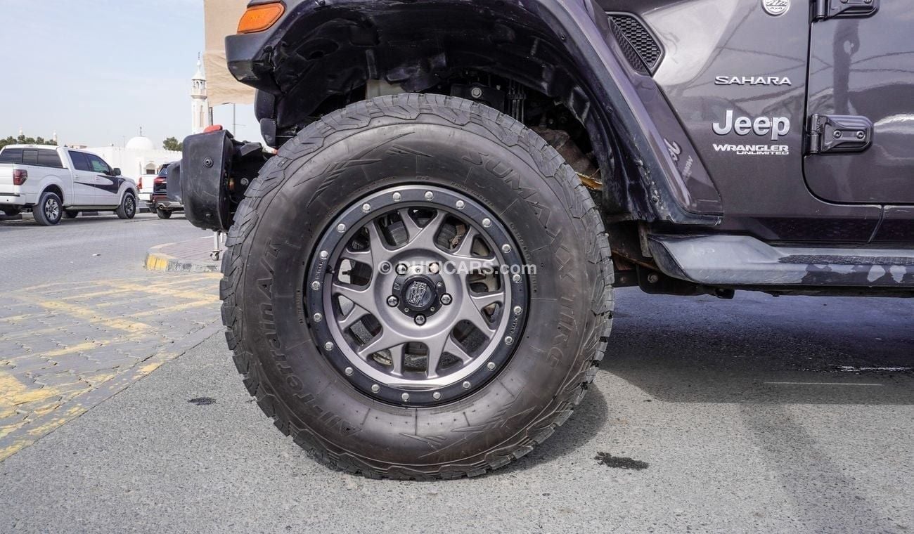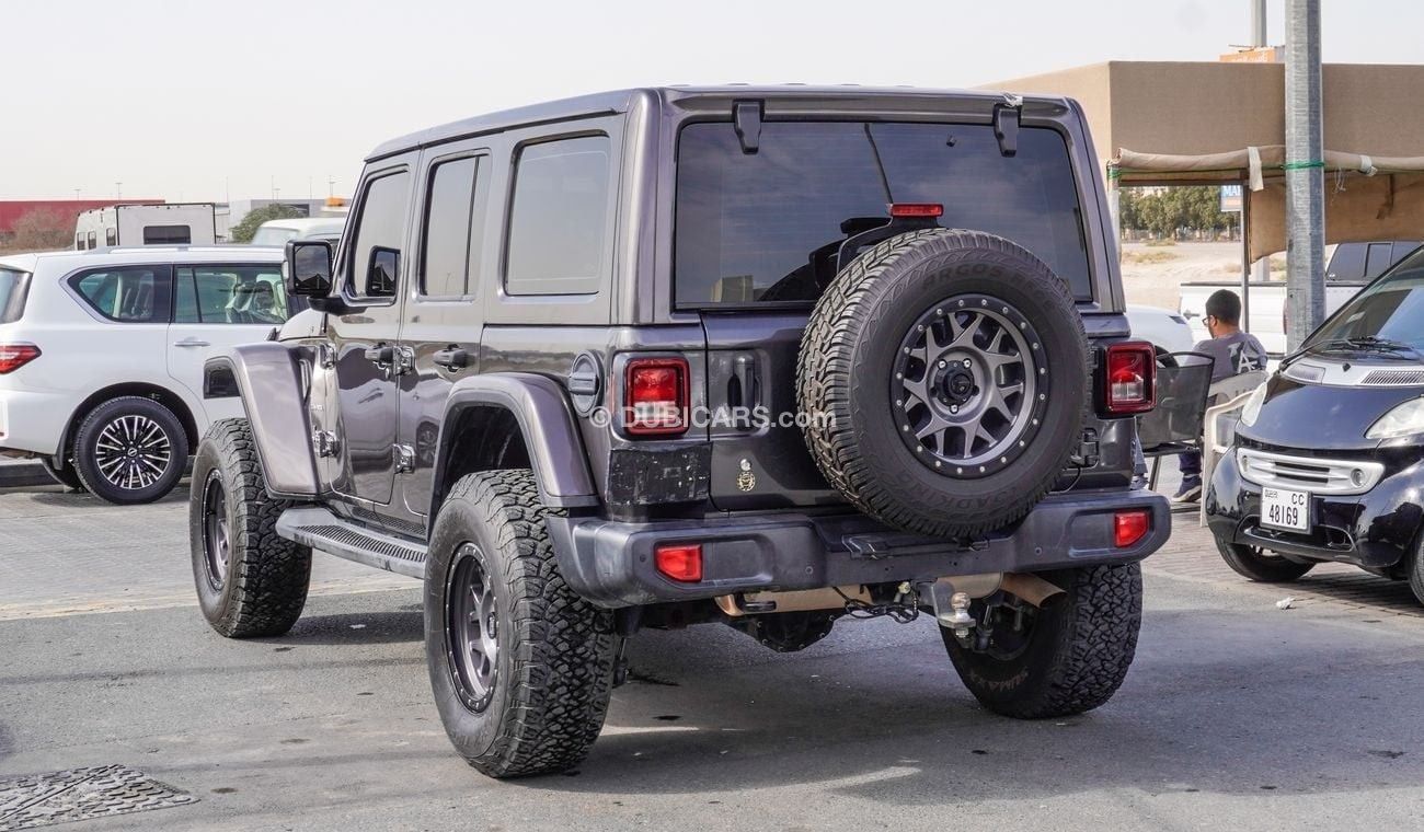 Used Jeep Wrangler Sahara for sale in Sharjah. Grey 2018 model, available at Al Nujoom Al Malakiah Used Cars. This car has automatic transmission, a 6 cylinder engine, 17″ wheels and black interior. 216,000 km, GCC specs.ج