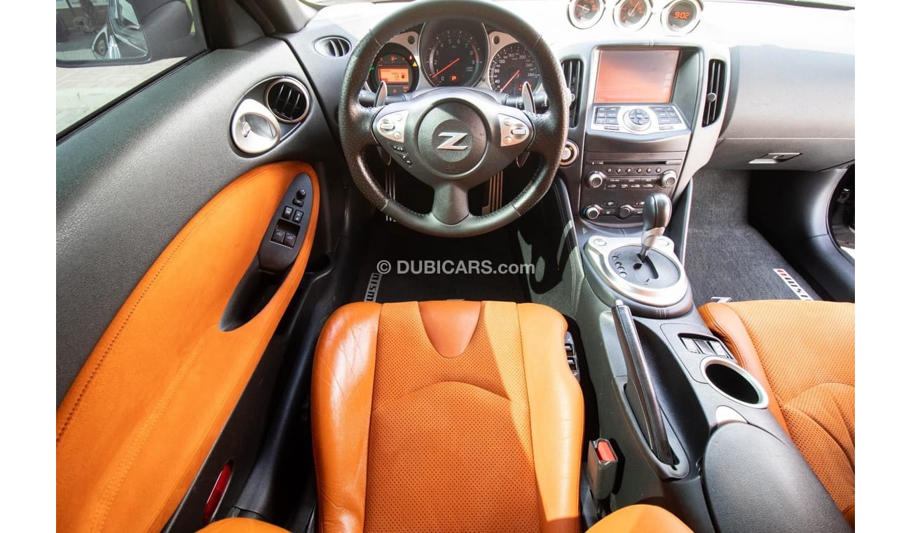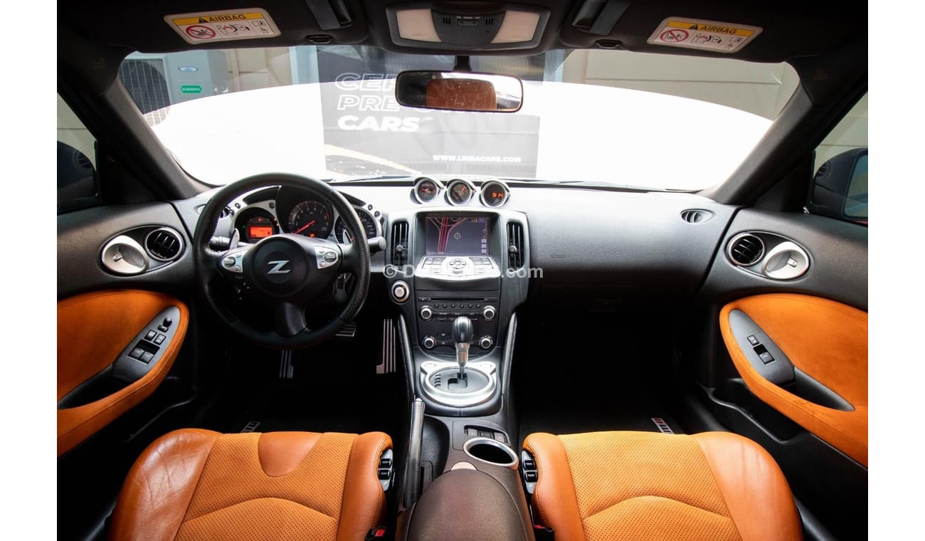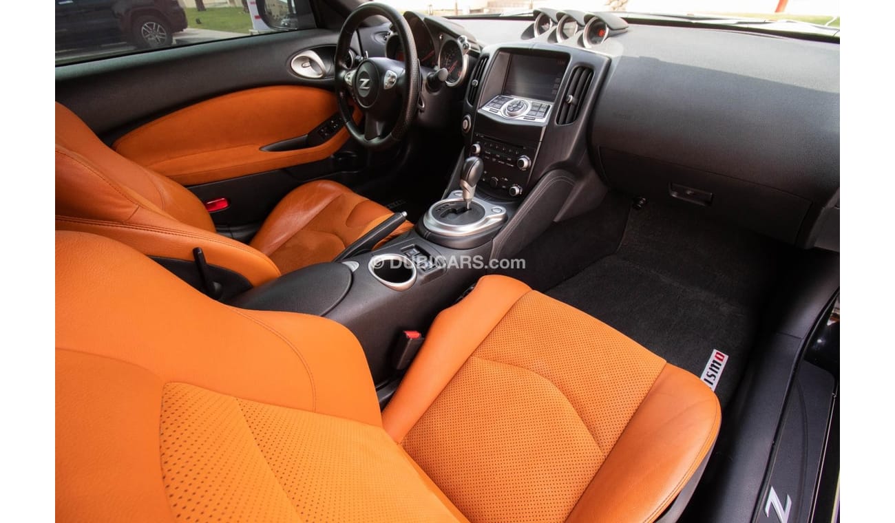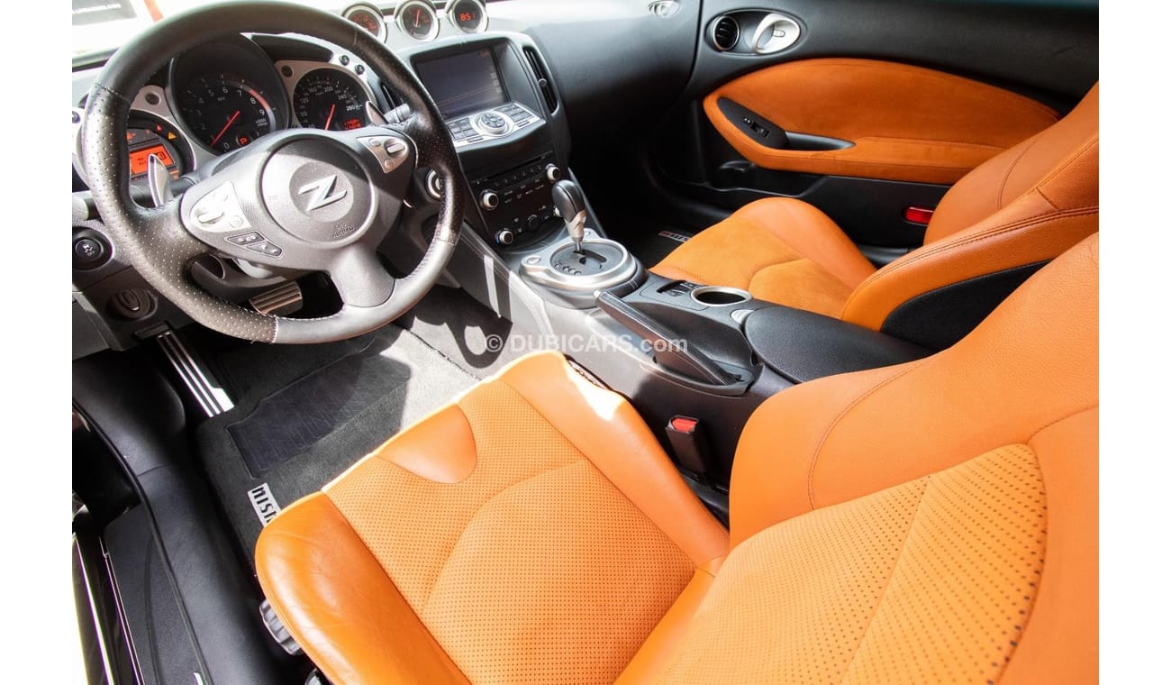 نيسان 370Z Z34 مستعمل للبيع في دبي. لون أسود 2018, موجودة عند Linda Cars. هذه السيارة لديها اوتوماتيكي , 6 سلندرات, عجلات 17 بوصة و لون برتقالي بالداخل. 69,000 كيلومتر, مواصفات خليجي.