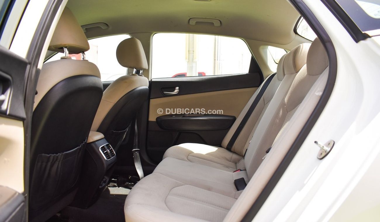 Used Kia Optima for sale in Sharjah with finance options. White 2019 model, available at Rebou Najd Used Cars Trading. This car has automatic gearbox, a 4 cylinder engine, 16″ wheels and beige interior. The car has GCC specs.