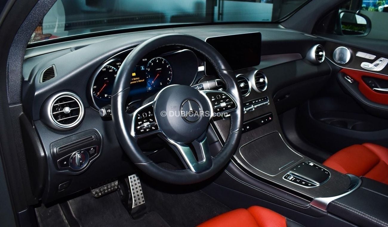 Pre-owned Mercedes-Benz GLC 300 4Matic for sale in Dubai. Grey/Silver 2020 model, available at Dubai 2000. This car has automatic transmission, 4 cylinders, 20″ wheels and red interior. 21,000 km, Imported specs.