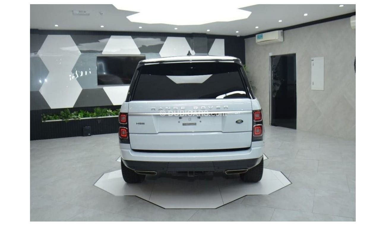 Range Rover vogue HSE for sale in Dubai. white 2021 model, black interior, available at Dubai 2000. This car has automatic transmission, 6 cylinders (D) , 22″ wheels , Imported specs.