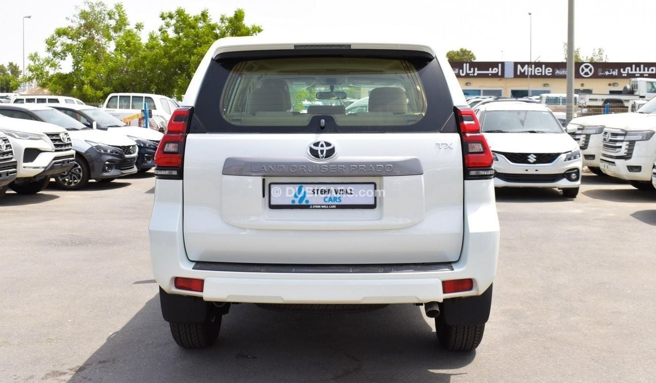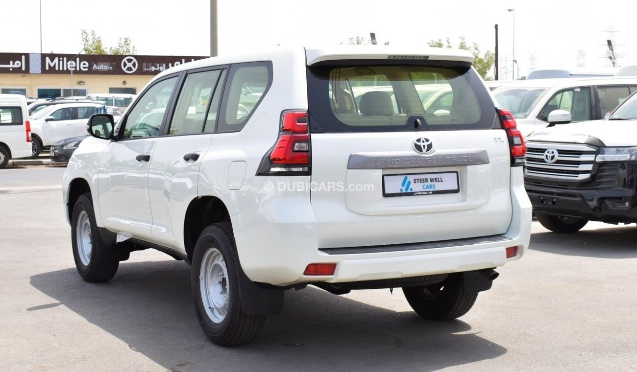 تويوتا برادو TX 2.7 L جديدة للبيع عند Steerwell Used Cars TR CO LLC في دبي. موديل 2022 لون ابيض. السيارة لديها اوتوماتيكي , محرك 4 4 سلندرات, عجلات 18 بوصة و لون بيج من الداخل. مواصفات دول مجلس التعاون الخليجي.
