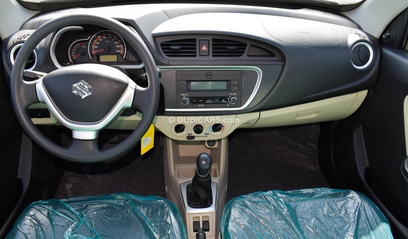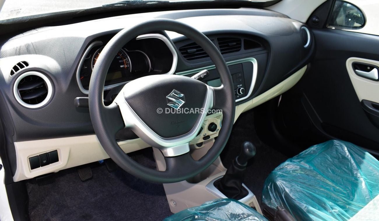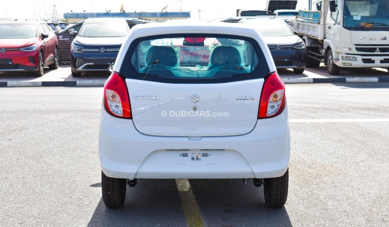 New Suzuki Alto for sale from MYK Motors FZE in Dubai. White 2023 model. The car has manual gearbox, 3 cylinder engine, 13″ wheels and beige interior. Imported specs.