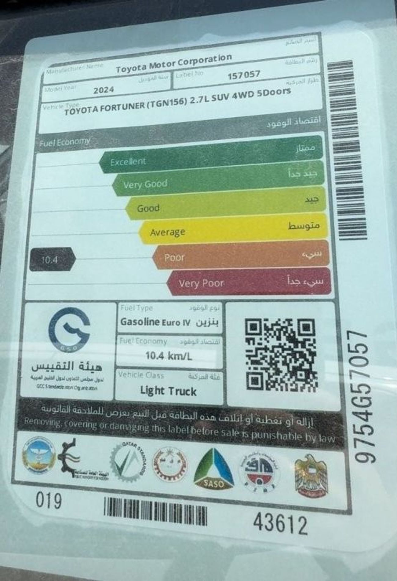 (جديد) تويوتا فورتشنر 2.7 لتر بنزين اوتوماتيك 4X4 موديل MY2024 0KM فقط للتصدير