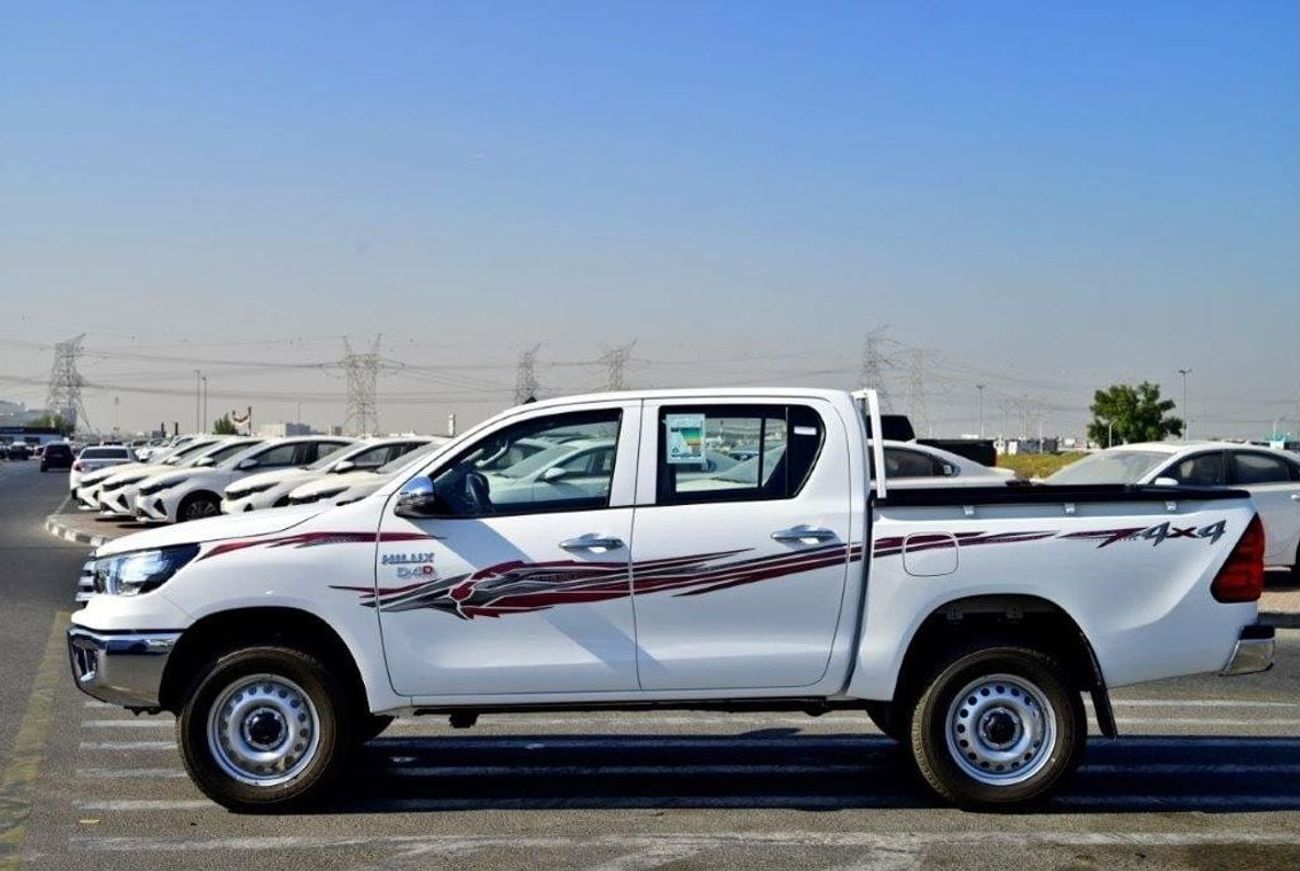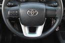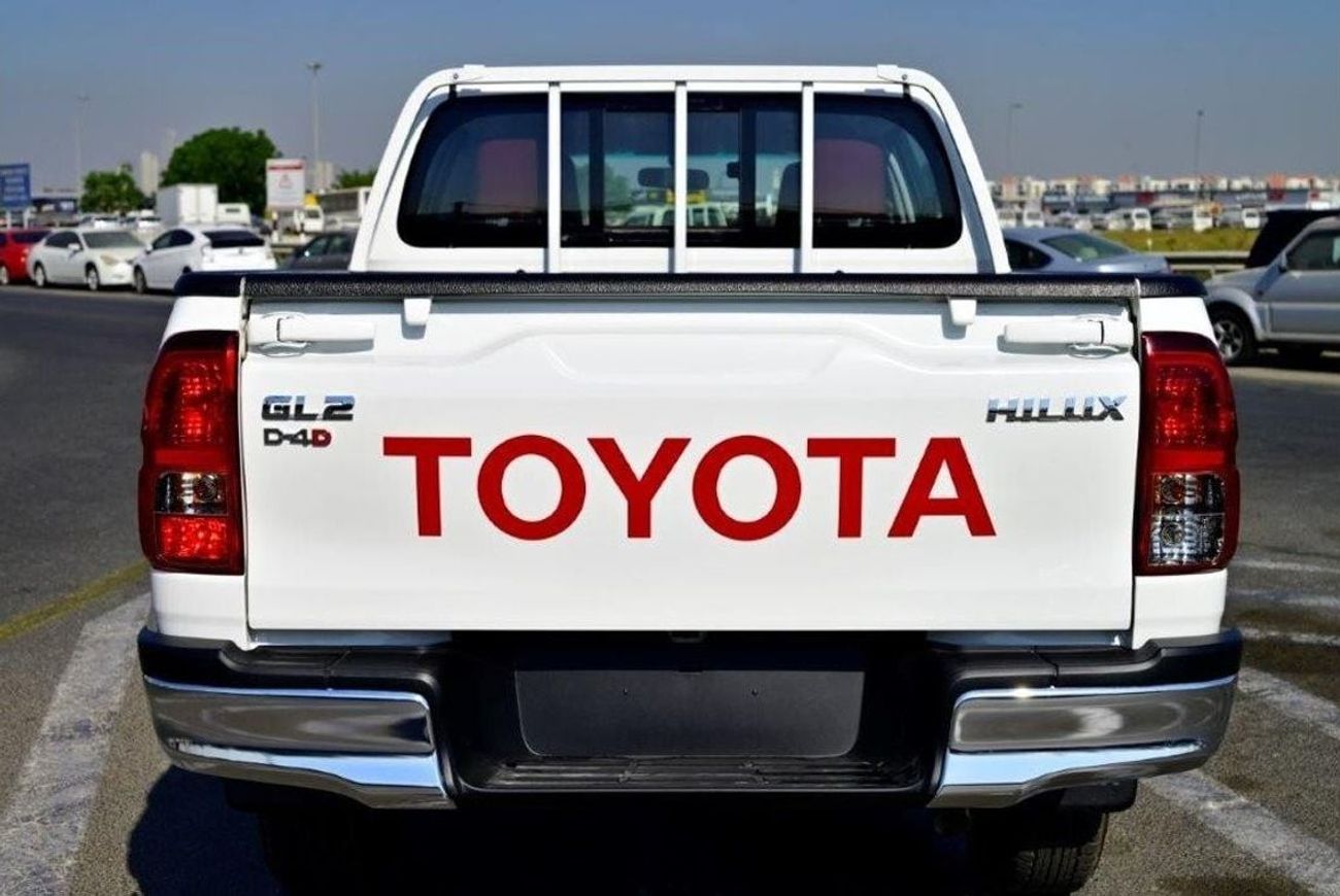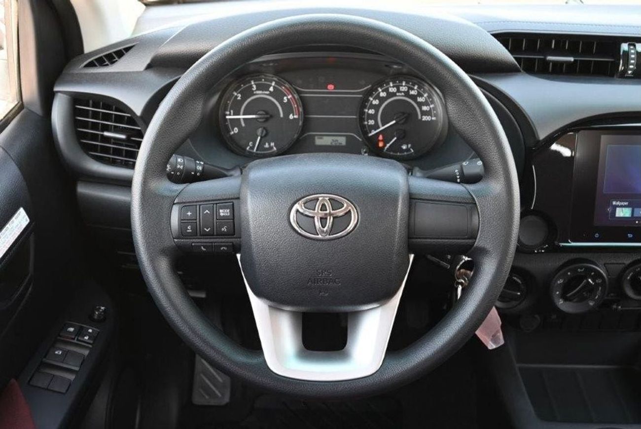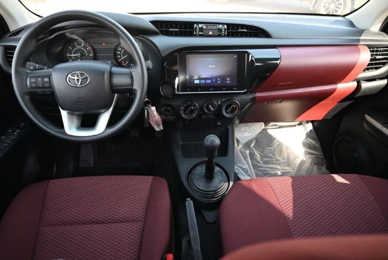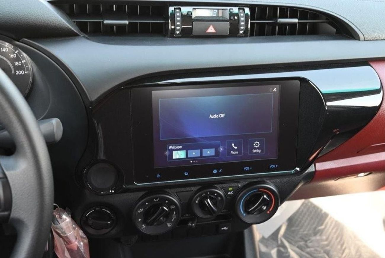 موديل 2024 تويوتا هايلكس دبل كاب GL2 2.4 لتر ديزل 6 مقاعد 4WD ناقل حركة يدوي الميزات الفنية المحرك: 2.4 لتر، 4 أسطوانات، ديزل D-4D، توربو أقصى قوة: 147 حصان / 3400 دورة في الدقيقة أقصى عزم دوران: 400 نيوتن متر / 1600-2000 دورة في الدقيقة ناقل حركة يدوي 6 سرعات نظام دفع رباعي (4X4) خزان الوقود: 80 لتر معدل استهلاك الوقود 14.9 كم/لتر الأبعاد الطول - العرض - الارتفاع (مم): ركاب (بما في ذلك السائق) الميزات الخارجية 17 بوصة عجلة فولاذية مقاس الإطار: 225/70R17C واقي من الطين (خلفي) مصد أمامي من الفولاذ مصباح ضباب خلفي جهاز تحكم عن بعد قفل مركزي للباب مرايا جانبية كهربائية بطانة صندوق الأمتعة نظام التعليق الخلفي: زنبرك ورقي ميزات داخلية مقاعد من القماش تكييف هواء يدوي وحدة تحكم علوية مقعد أمامي حامل أكواب أمامي أدوات تحكم مثبتة على عجلة القيادة نوافذ كهربائية نافذة خلفية منزلقة شاشة متصلة صوت شاشة تعمل باللمس "C-DA" نظام Apple CarPlay مقاس 8 بوصات راديو البث الصوتي الرقمي (DAB) منفذ USB-A 2 مكبر صوت السلامة والراحة المميزات الوسائد الهوائية (للسائق والراكب الأمامي) نظام منع انغلاق المكابح (ABS) فرامل قرصية أمامية وفرامل أسطوانية خلفية توزيع قوة الفرامل إلكترونيًا (EBD) نظام التحكم في ثبات السيارة (VSC) نظام مساعدة الانطلاق على المنحدرات (HAC) نظام تحذير ضغط الإطارات (TPWS) التعليق الخلفي: زنبركات ورقية خطوط جانبية سجادات أرضية - سجاد مجموعة تنظيم السلامة