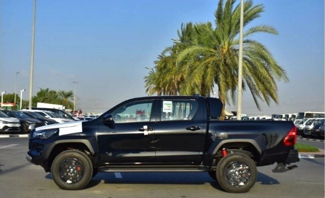 تويوتا هايلكس GR Sport موديل 2024 جديدة للتصدير دبي. متوفر من TARGT Motors Trading FZE. اوتوماتيكي , 4 سلندرات, عجلات 17 بوصة و لون أسود بالداخل. لم يسبق لها مثيل، مواصفات خليجية.