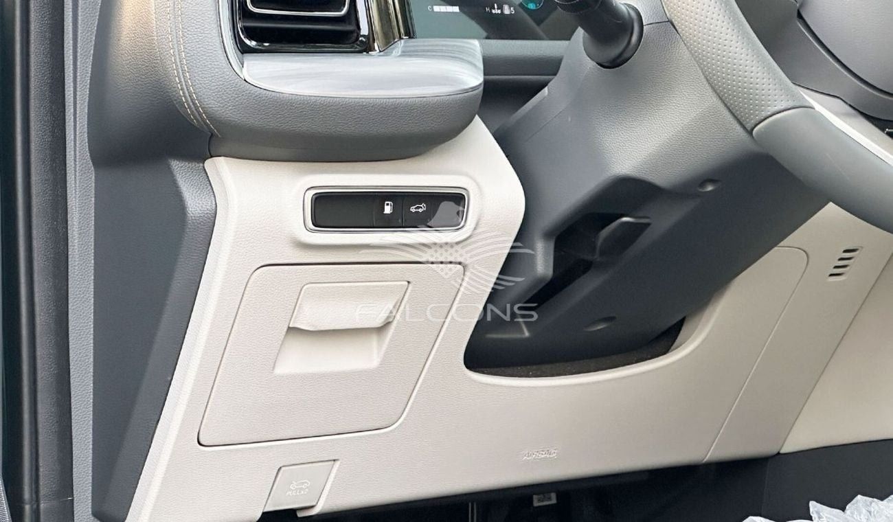 مميزات داخلية مرآة الهاتف شاشة لمس LCD عالية الدقة مقاس 14.6 بوصة لوحة عدادات LCD شاحن لاسلكي عدد السماعات: 10 نظام صوت Alpine منفذ USB نظام هاتف بدون استخدام اليدين BT تعديل مستوى الصوت على أساس السرعة PEPS (دخول سلبي بدء تشغيل سلبي) AR-HUD (30 بوصة، TFT) نظام مراقبة داخل السيارة (IMR) نظام التوجيه: نظام توجيه كهربائي (EPS) لون داخلي (فاتح/غامق/غامق + أخضر) وسادة مقعد السائق تعديل زاوية كهربائي تكييف هواء أوتوماتيكي ثلاثي المناطق مقعد السائق وظيفة الذاكرة مستشعر جودة الهواء (AQS) قابل للتعديل كهربائيًا في 4 اتجاهات مقعد الراكب الأمامي عجلة قيادة مغلفة بالجلد مقعد الراكب مفتاح رئيسي عجلة قيادة متعددة الوظائف تعديل يدوي في 4 اتجاهات مسند رأس أمامي ناقل حركة يدوي مقاعد الصف الأول جيدة التهوية تعتيم تلقائي من الداخل مرآة الرؤية الخلفية مقاعد الصف الثاني سهلة الدخول (انزلاق كهربائي وإعادة ضبط يدوي) جلد 8 مقاعد مزينة بالجلد الصناعي مقاعد الصف الثاني مقاعد كهربائية للأسفل ومقاعد كهربائية للتخفيض خياطة ماسية (الصف الأول والثاني) صف) نوافذ كهربائية بلمسة واحدة لأعلى ولأسفل (الصف الأمامي والثاني) مقعد سائق كهربائي بستة اتجاهات مسند ذراع مركزي للصف الأول مع وظيفة تهوية مقعد السائق دعم قطني كهربائي (بطريقتين): صندوق قفازات مبطن وسادة مقعد السائق كهربائية قابلة للانكسار: إضاءة محيطة ذكية متعددة الألوان وسائد هوائية أمامية مزدوجة وسائد هوائية أمامية جانبية مزدوجة وسائد هوائية ستائرية جانبية وسادة هوائية للركبة (للسائق فقط) أحزمة أمان الصف الأمامي مع مشدات ومحددات القوة حزام الأمان الأمامي إنذار غير مقيد (ضوء وجرس) حزام أمان الراكب الخلفي إنذار غير مقيد (ضوء) مثبتات مقعد أمان الأطفال ISOFIX الميزات الخارجية حجم الإطار: 255/50 R20 التعليق الأمامي: نوع McPherson مستقل التعليق الخلفي: شعاع متعدد الوصلات مستقل كروم مزدوج أنابيب العادم مصابيح أمامية LED مصابيح LED نهارية تعمل ضوء الفرامل LED مصابيح أمامية أوتوماتيكية المصابيح الأمامية ضبط الارتفاع تلقائيًا شعاع القيادة التكيفي (ADB) شعاع عالي مساعد (HBA) ترحيب المصابيح الأمامية مصابيح الضباب الخلفية مرايا جانبية قابلة للطي كهربائية وأوتوماتيكية ذاكرة ذكية للمرايا الجانبية ووظيفة الانقلاب التلقائي للرجوع للخلف ماسحات استشعار المطر (أمامية فقط) باب خلفي كهربائي (مع وظيفة الإغلاق التلقائي) سقف بانورامي زجاج أمامي عازل للصوت زجاج أمامي عازل للصوت مستشعر ركن السيارة الأمامي والخلفي رؤية محيطية عالية الدقة نظام ركن السيارة FAPA رؤية محيطية عالية الدقة نظام ركن السيارة مثبت السرعة التكيفي (ACC) نظام التعرف على إشارات المرور (TSR) نطاق السرعة الكاملة مثبت السرعة التكيفي (ISL-ACC) تحذير الاصطدام الأمامي (FCW) الكبح الطارئ المستقل (AEB) تحذير مغادرة المسار (LDW) مساعدة الحفاظ على المسار (TJA) مساعدة تثبيت السرعة المتكاملة (ICA) اكتشاف البقعة العمياء (BSD) + مساعدة تغيير المسار (LCA) تحذير فتح الباب (DOW) تحذير الاصطدام الخلفي (RCW) تنبيه حركة المرور الخلفية (RCTA) مساعدة الحفاظ على المسار في حالات الطوارئ (ELKA) مساعدة ركن السيارة الأوتوماتيكية في فيوجن (FAPA) برنامج الثبات الإلكتروني (ESP) مساعدة الفرامل الهيدروليكية (HBA) نظام التحكم في بدء التشغيل على التل (HHC) نظام التحكم في نزول التل (HDC) فرامل الانتظار الإلكترونية (EPB) مع Autohold نظام مراقبة ضغط الإطارات (TPMS) نظام منع تشغيل المحرك (مع إنذار ضد السرقة)