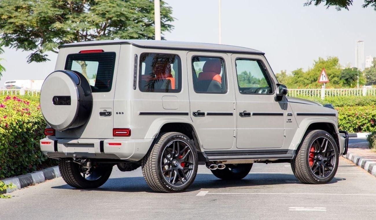 2025 مرسيدس بنز G63 AMG Double Night Pack هي سيارة رياضية فاخرة عالية الأداء. مواصفات دول مجلس التعاون الخليجي مع ضمان لمدة 5 سنوات تتميز بمحرك V8 مزدوج التوربو سعة 4.0 لتر ينتج 577 حصانًا وعزم دوران يبلغ 850 نيوتن متر. تأتي السيارة مع ناقل حركة أوتوماتيكي بـ 9 سرعات ودفع رباعي لتحقيق تحكم واستقرار فائقين. تم تشطيب الجزء الخارجي باللون الرمادي Nardo، بينما يتميز الجزء الداخلي بمخطط ألوان أحمر لتباين مذهل. تتضمن Double Night Pack نظام صوت Burmester وتفاصيل من ألياف الكربون وجنوط Maybach مقاس 22 بوصة. توفر سرعة قصوى تبلغ 220 كم / ساعة ووقت 0-100 كم / ساعة يبلغ 4.4 ثانية.