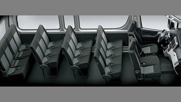 The trims for Toyota Hiace are 3.5L GLS, Commuter 3.5L M/T and Commuter 3.5L A/T.