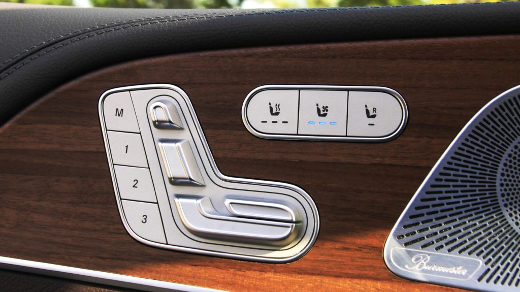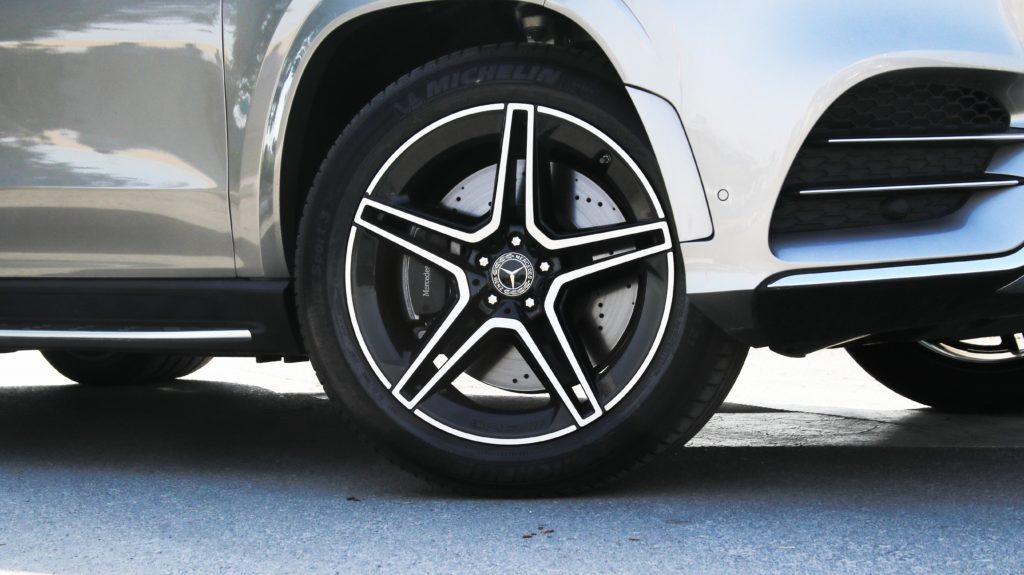 Our test vehicle has the optional AMG Line package which adds the sharp 5-spoke 21-inch alloys and AMG styling cues.