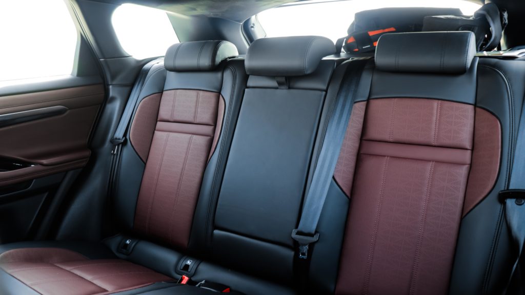 To our surprise, the rear seats are actually usable as normal humans can fit onto the rear bench. Two people works just fine. Adding a third in the middle is a bit of a stretch, and it takes away the armrest/cup holder.
