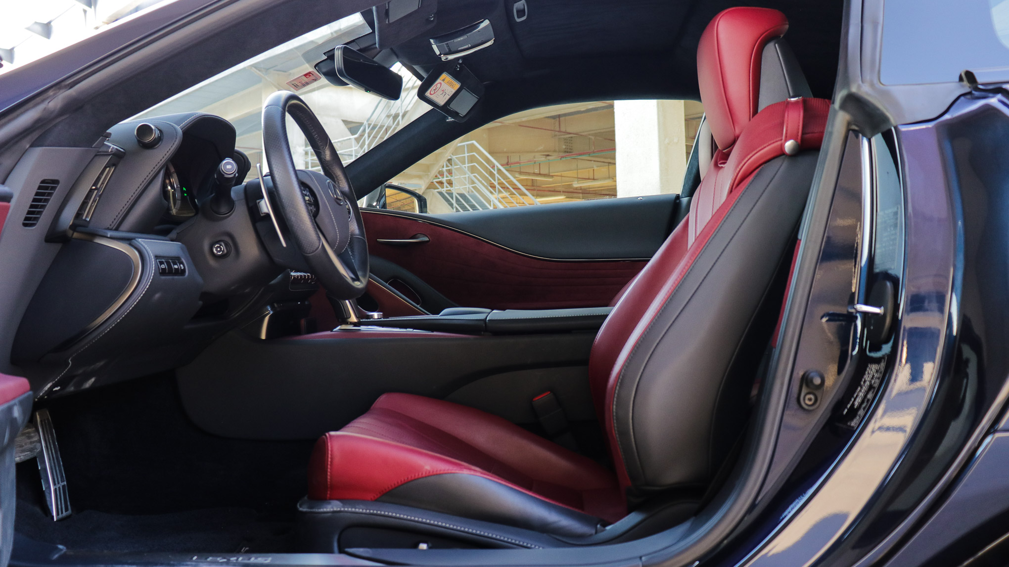 What can we say, the LC500 is nothing short of luxury. Premium leather covers the seats and upper dashboard. Our test model featured a red and black interior with red suede featuring on the door panels.