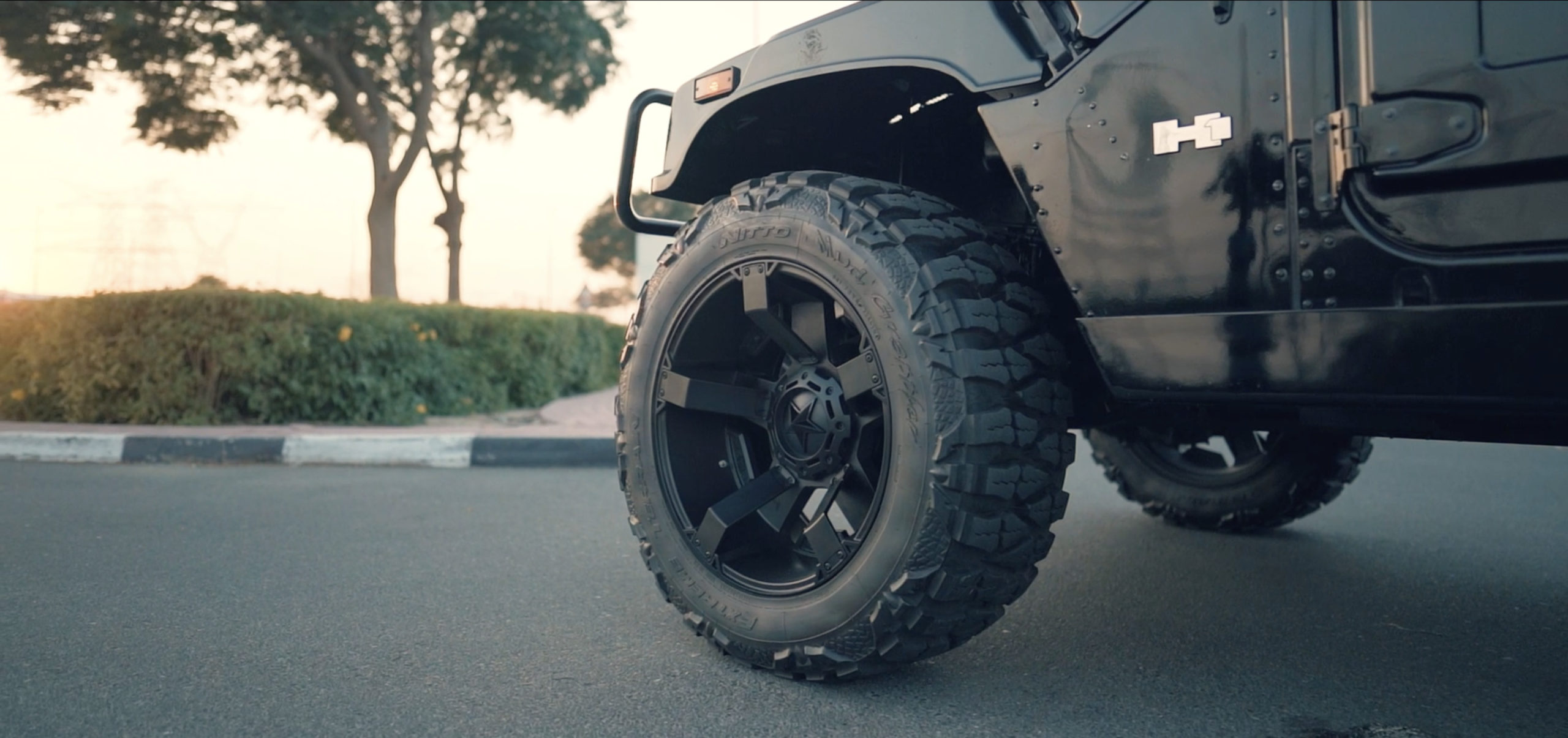 The Hummer H1 looks tough and mean even in factory spec. However, things have been turned up a notch on this Hummer H1. The first element that is sure to grab your attention are the wheels. Gone are the tough military-spec wheels. Instead, this Hummer H1 rides on fancy five-spoke Blackstar alloy wheels shod with thick Nitto Mud Grappler tyres.