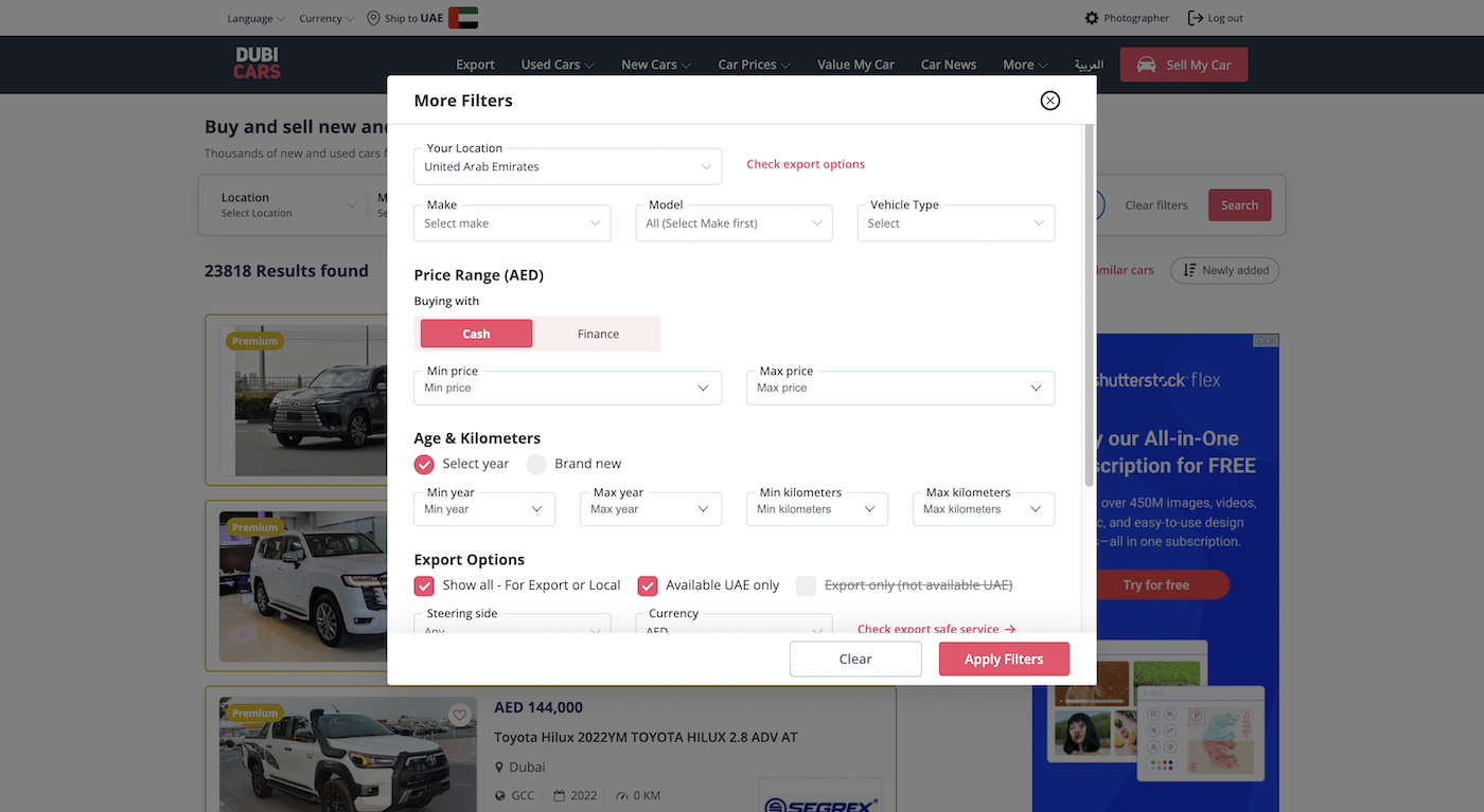 The easiest way to get to the car that you want is to use filters and with the new website design, DubiCars has new intuitive filters. You can now filter your search results by year of manufacture, mileage, car specs, engine specs, fuel type, number of cylinders, number of seats, gearbox type, etc. These filters are also laid out in a new layout that makes them clearer and easier to use. With thousands of cars to choose from, these filters are sure to make your car search easier.