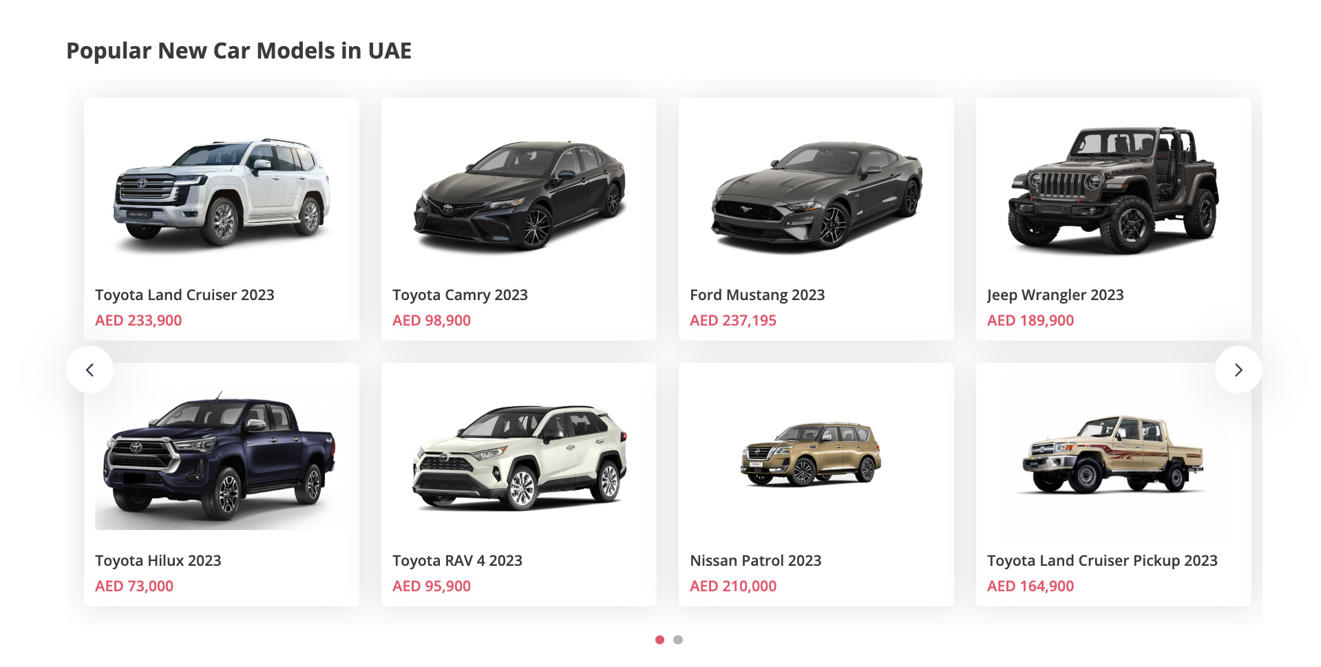 DubiCars has the greatest selection of both new and used cars in the UAE. Every page of the ‘New Cars’ section has a carousel or two to lead users to over 20,000 new and used cars in the UAE. You get to see new and used cars of the particular model that you are interested in.