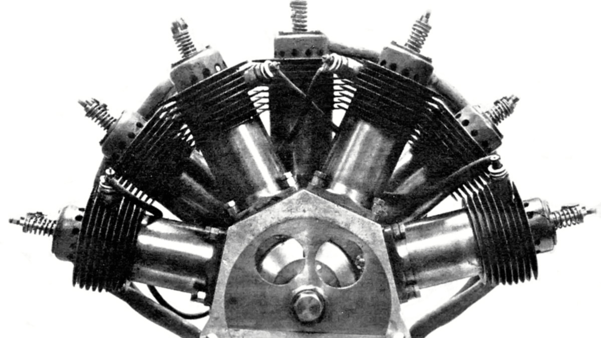 - Cylinders are arranged in a circular pattern around the crankshaft.