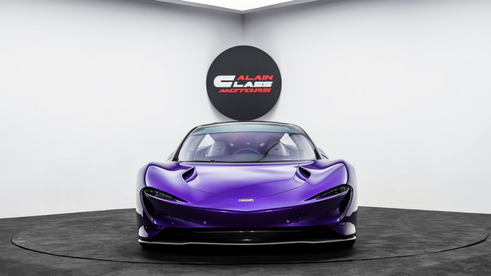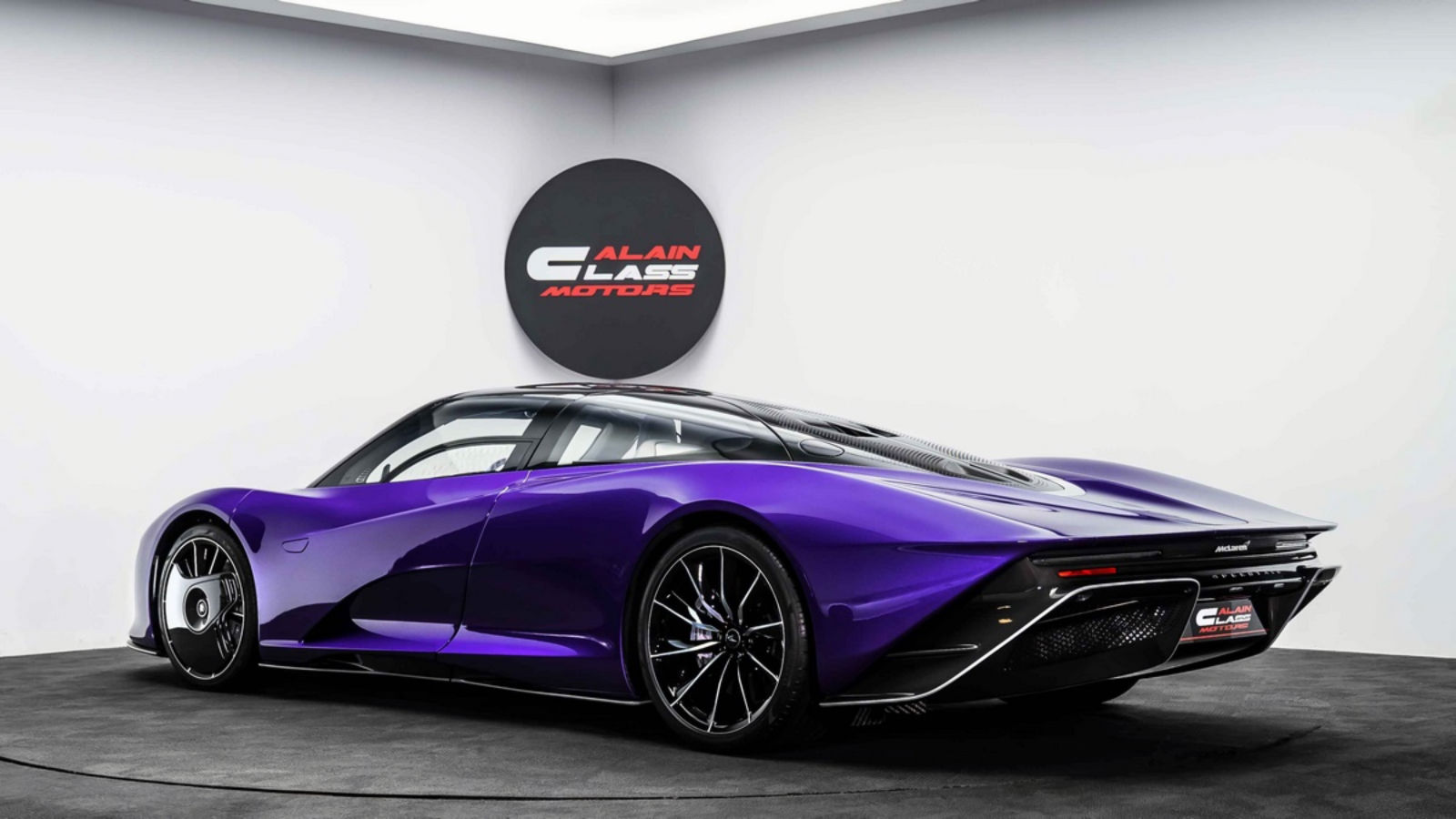 The car features slim LED headlights that accentuate its futuristic appearance. The lighting elements are seamlessly integrated into the overall design. The traditional wing mirrors are replaced by retractable digital cameras that contribute to the aerodynamic efficiency of the car. This particular Speedtail from Al Ain Class Motors features a unique purple exterior paint scheme that accentuates the hypercar’s exterior design.