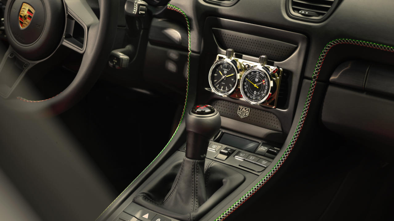- Highlighted by a stopwatch module in the centre console, featuring dual clocks with a historic tie to the TAG Heuer Carrera Chronograph on the 154.