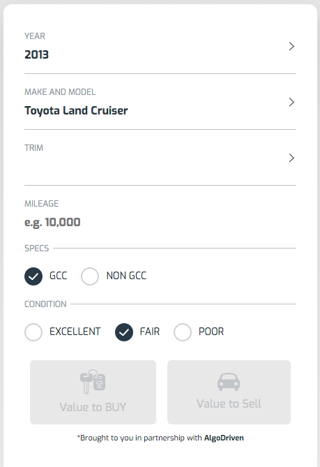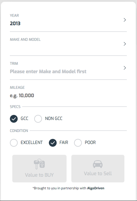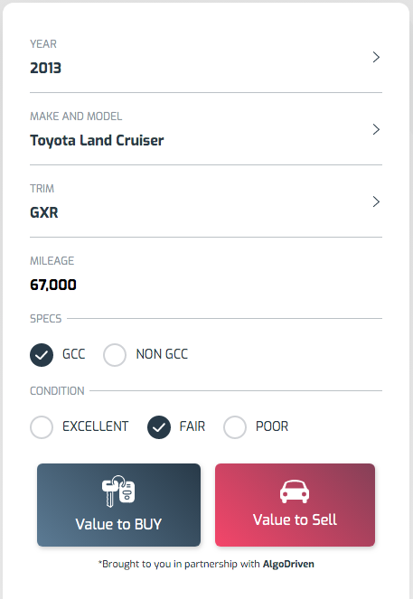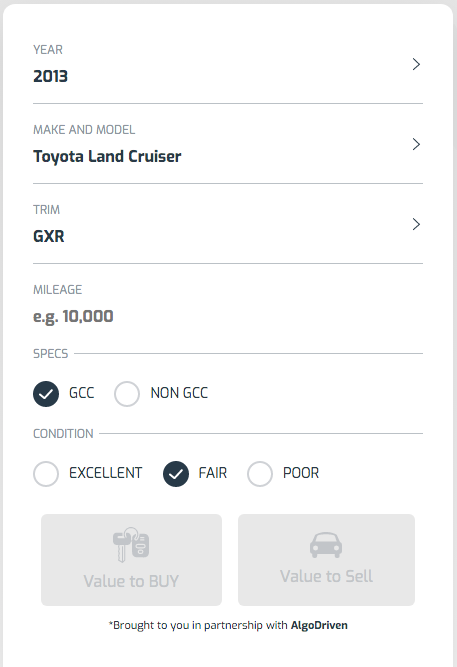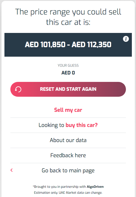 We haven’t just magically pulled these numbers out of thin air, we’ve teamed up with data scientists at AlgoDriven who source and calculate the prices from hundreds of independant UAE car dealers, insurance companies and banks as well as market retail prices.